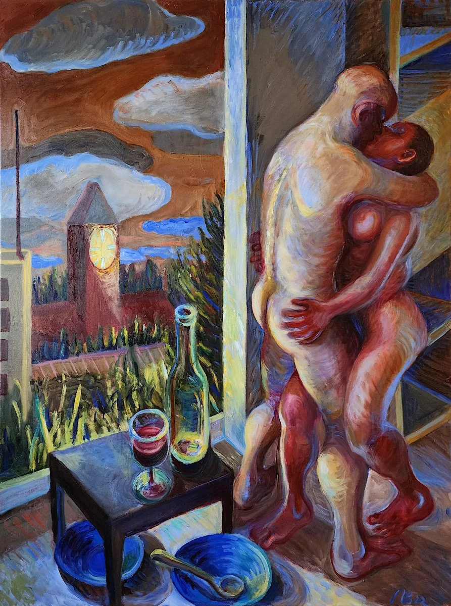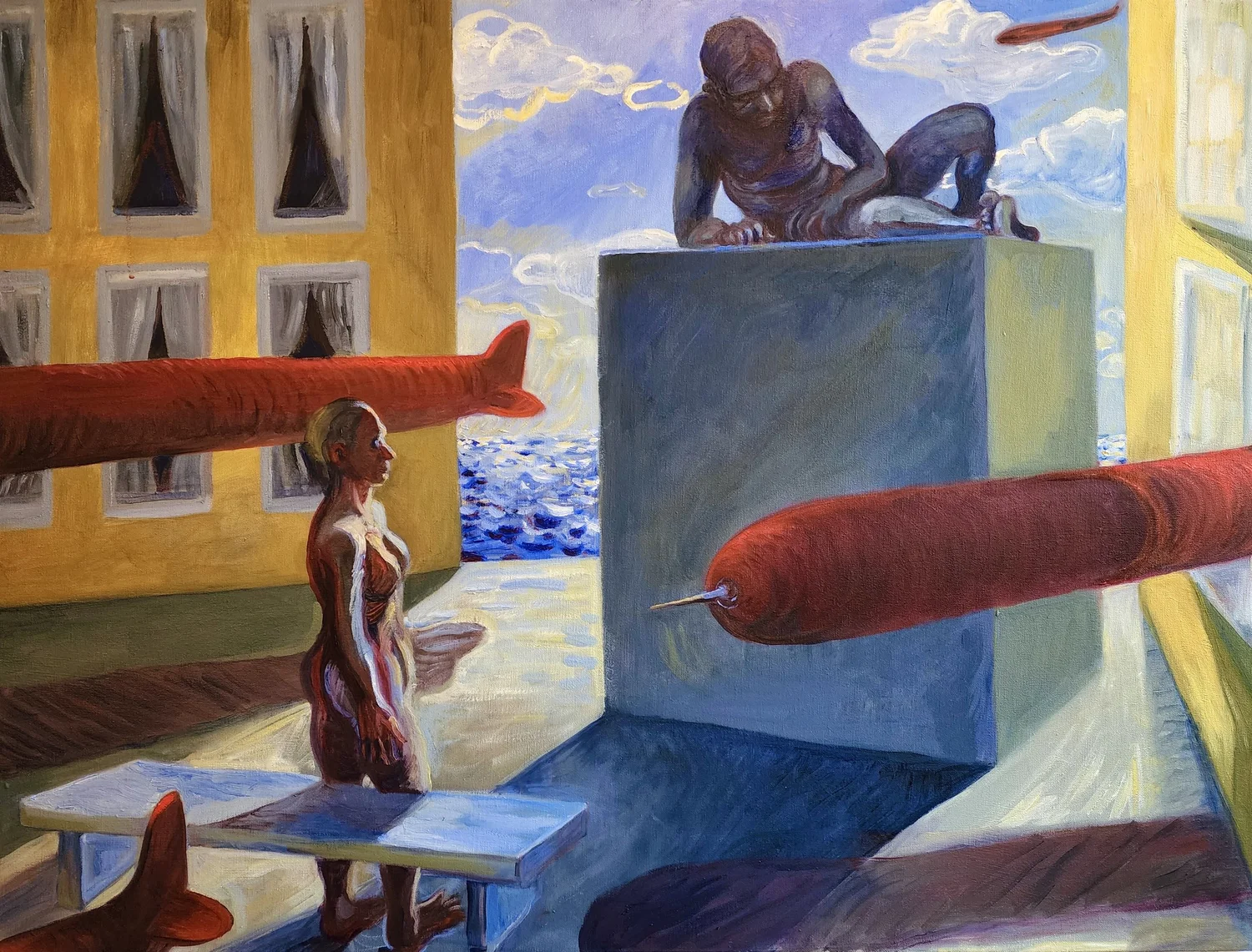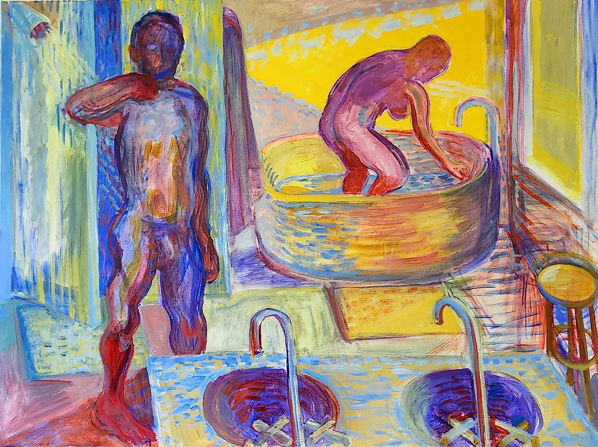 Couple in Bathroom 2 (2023) 36 x 48” o/c