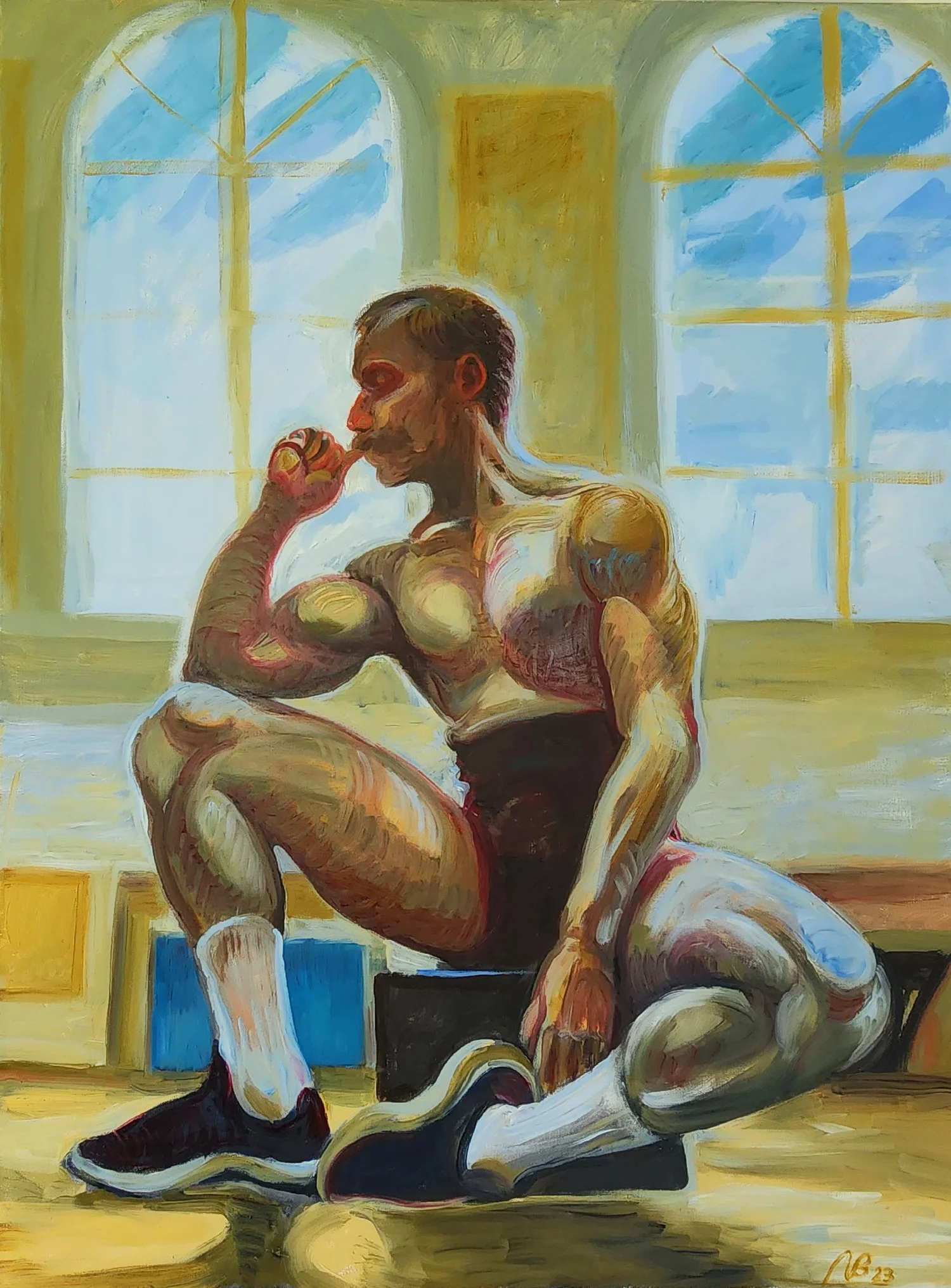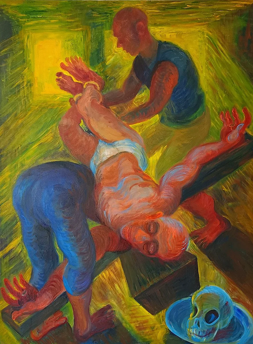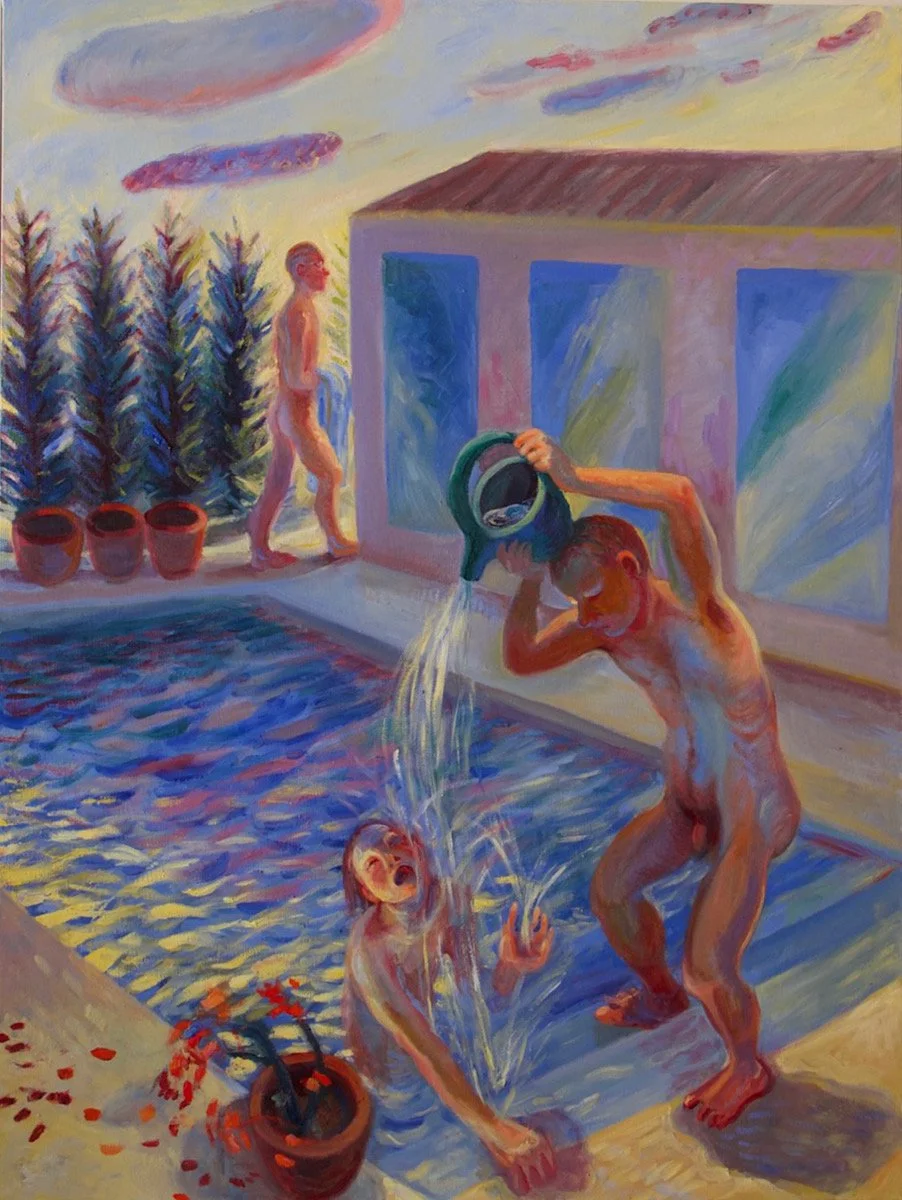 Couple in Bathroom 2 (2023) 36 x 48” o/c
