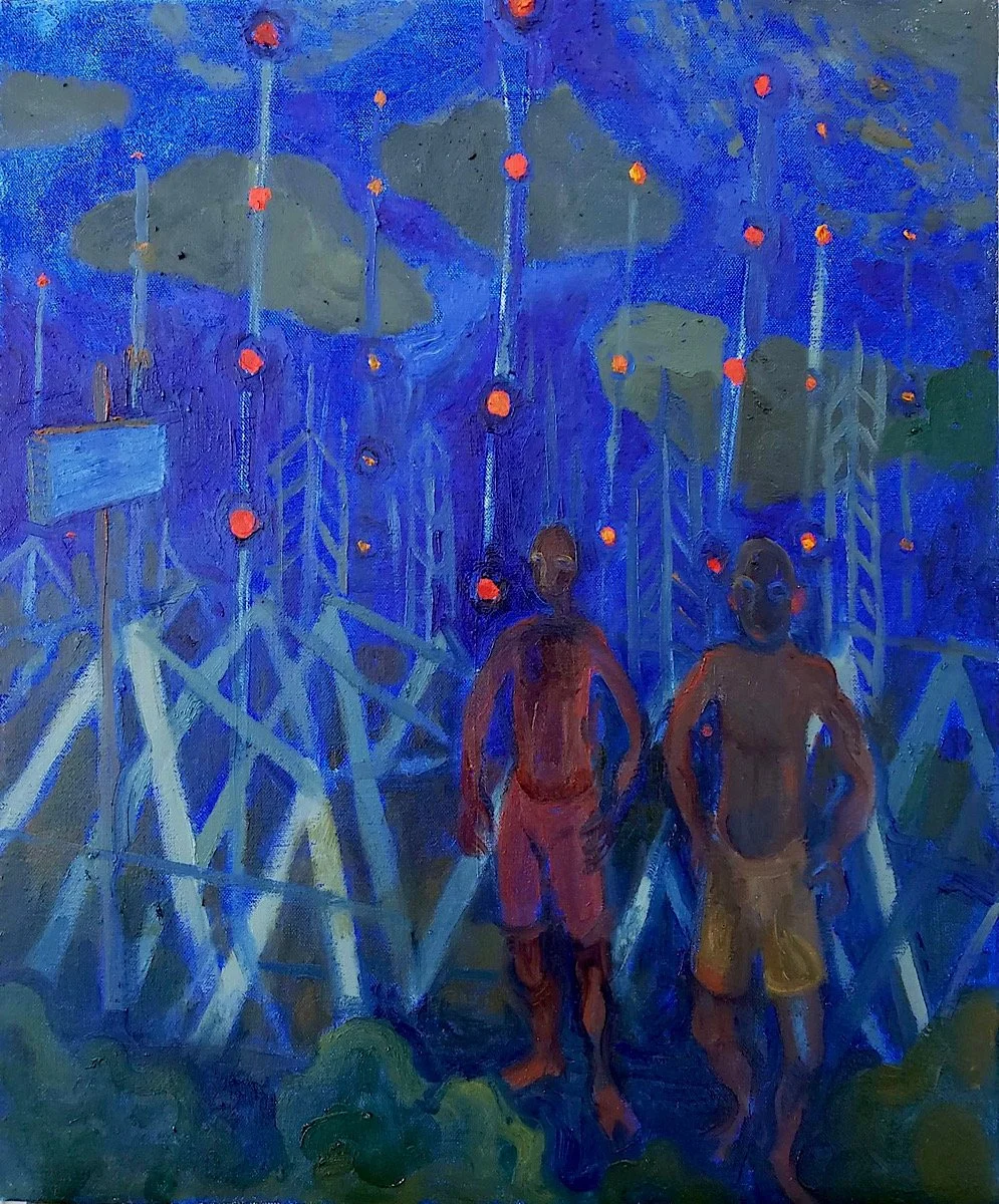 Industrial Landscape with Two Figures (2020) 20 x 16” o/c