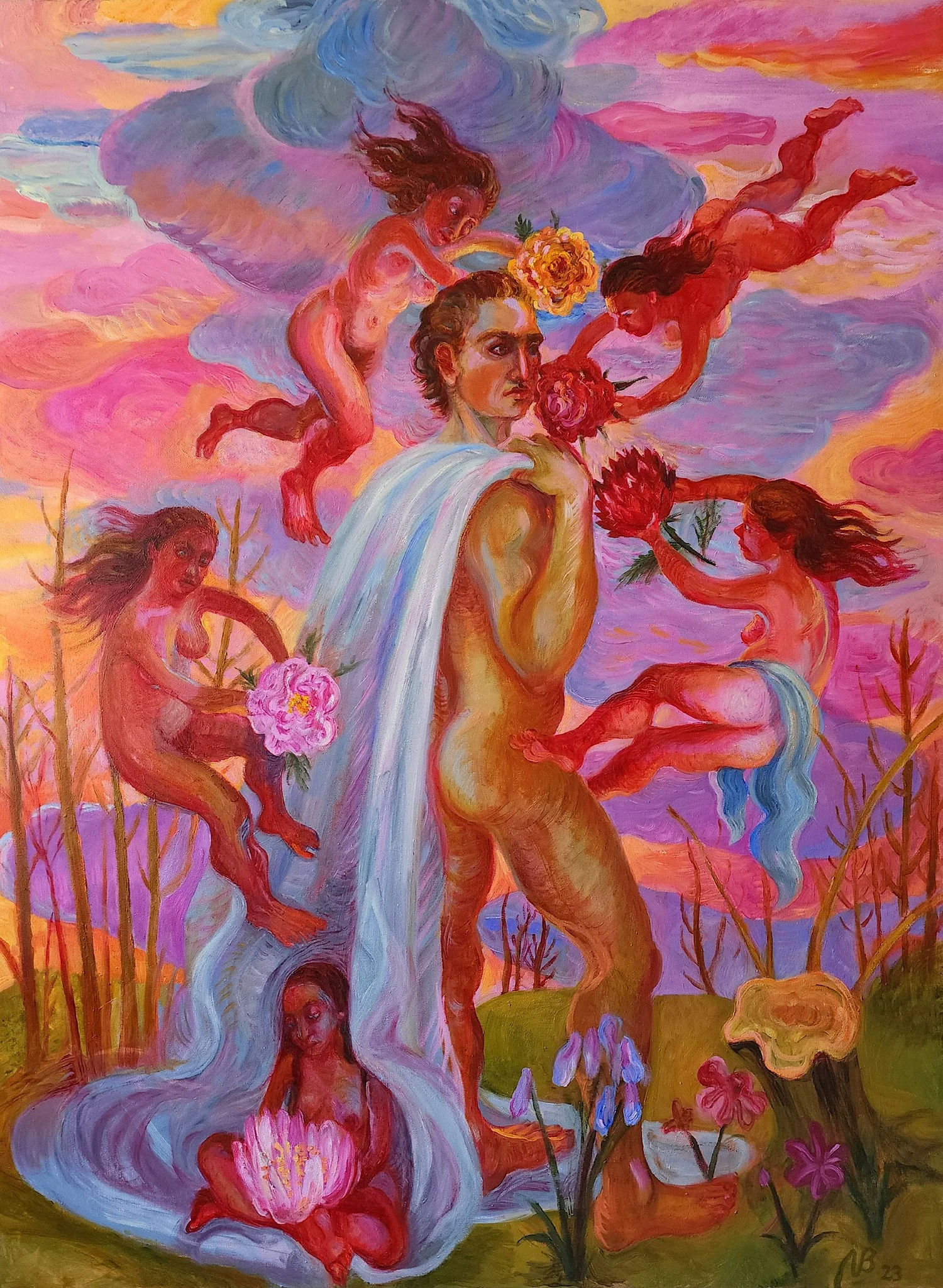 Still Life with Dead Roses (2022) 40 x 24” o/c